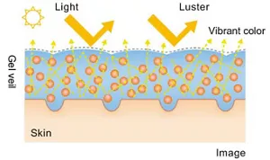 Due to the diffusion of light penetrating even the foundation layer, a moisture veil of foundation brings out the beauty of natural skin while preserving its inherent tone and texture.