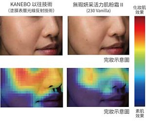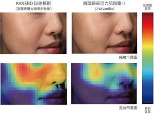 花王研發的 AI 智慧識妝系統對「無瑕妍采活力肌粉霜Ⅱ」的妝效評估發現,其妝感與原生素肌幾乎一致。